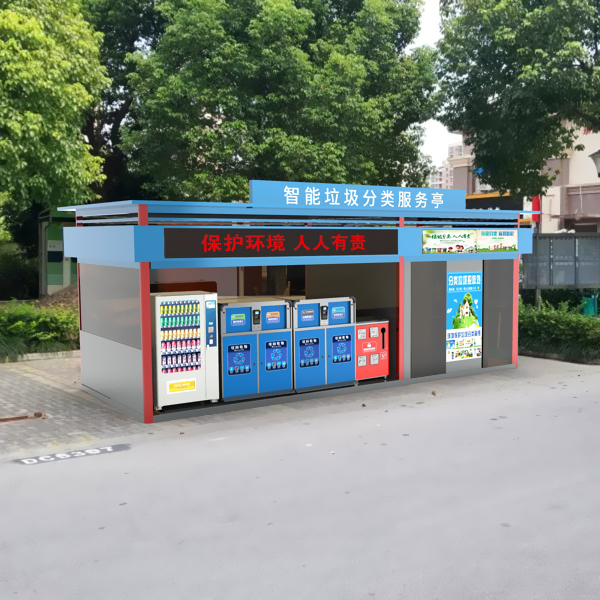 1.配备智能垃圾分类收集箱,积分兑换机,有害垃圾收集箱。居民扫码投递,智能设备称重积分,满桶报警,积分查询,积分兑换功能。
