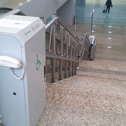 遇障碍即停 | 载人平台底部和坡板的安全感应板可以探测障碍物,如遇障碍即令平台停止运行 |